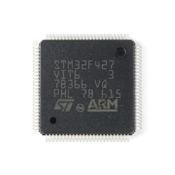 The STM32F427VIT6 is a microcontroller from the STM32F4 family, manufactured by STMicroelectronics. It is a 32-bit microcontroller with a maximum operating frequency of 180 MHz and 2 MB of flash program memory.